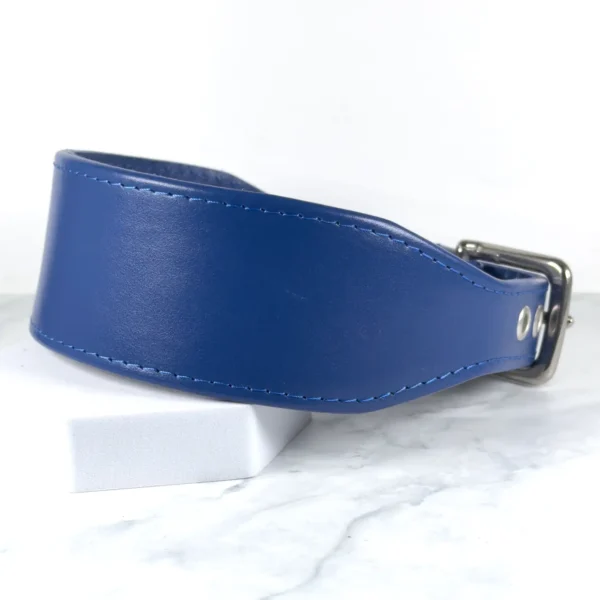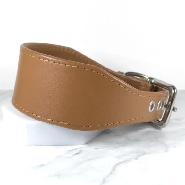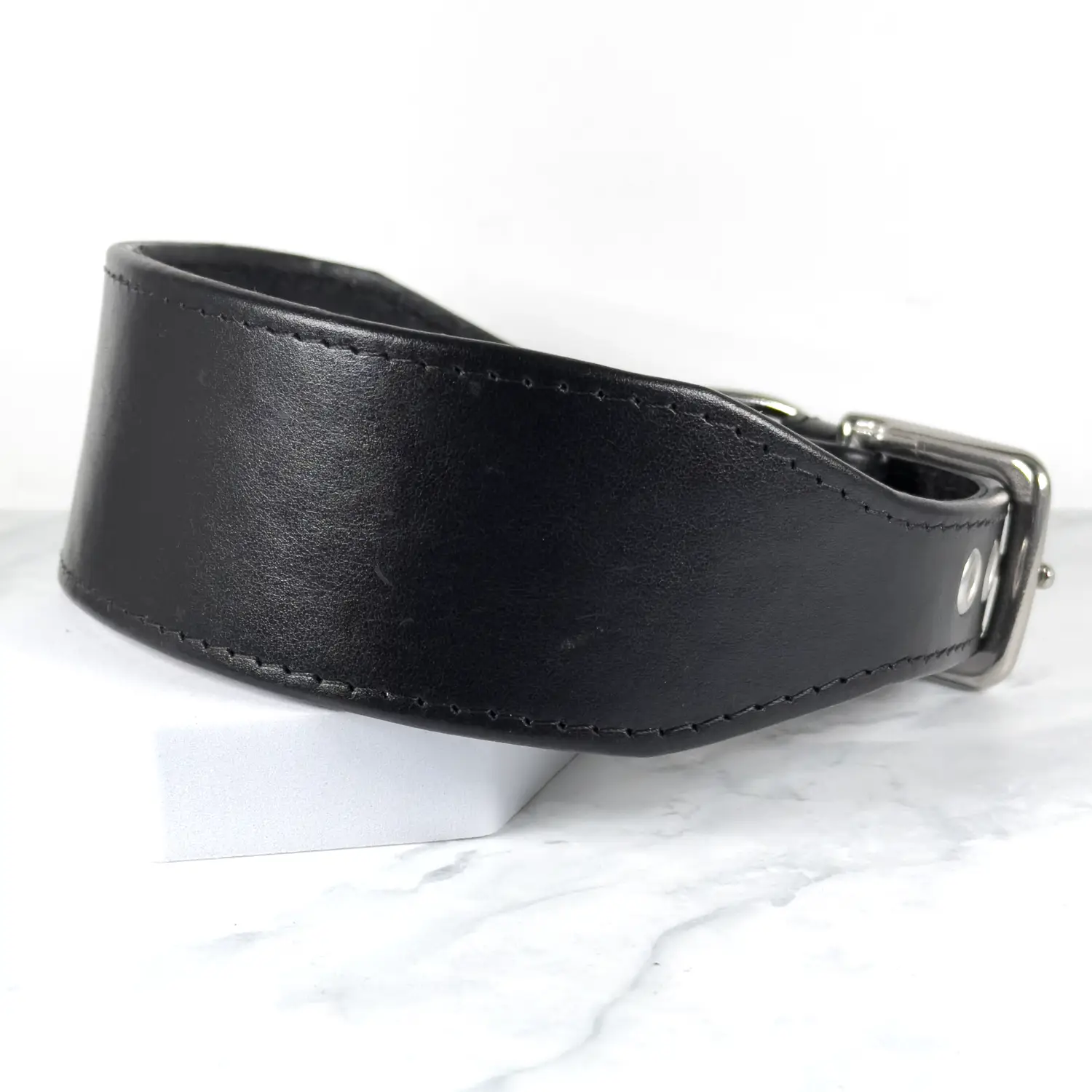 Leather greyhound collar handmade in premium Italian leather. Soft-lined, durable, and shaped to support your sighthound’s neck in comfort.