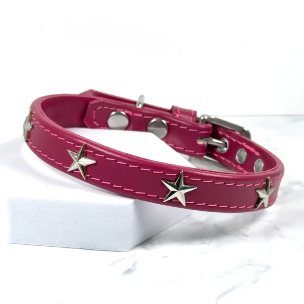 Leather dog collar with silver star studs, handmade to order in your choice of colour.