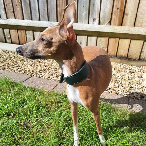 Getting your Whippet puppy’s first collar right makes all the difference. This handmade leather Whippet puppy collar is designed to give your young sighthound comfort, gentle support, and a custom look from day one. With 28 colours to choose from, you can create a collar that’s every bit as unique as they are.