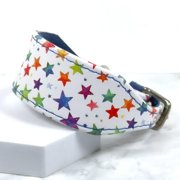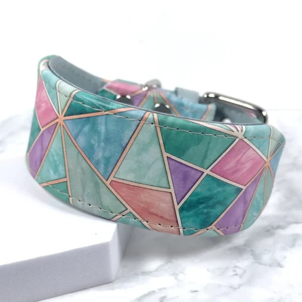 The wide centre panel also means the print has considerably more surface area to work with than a standard flat collar, which is why the designs tend to look particularly striking on the sighthound collars.